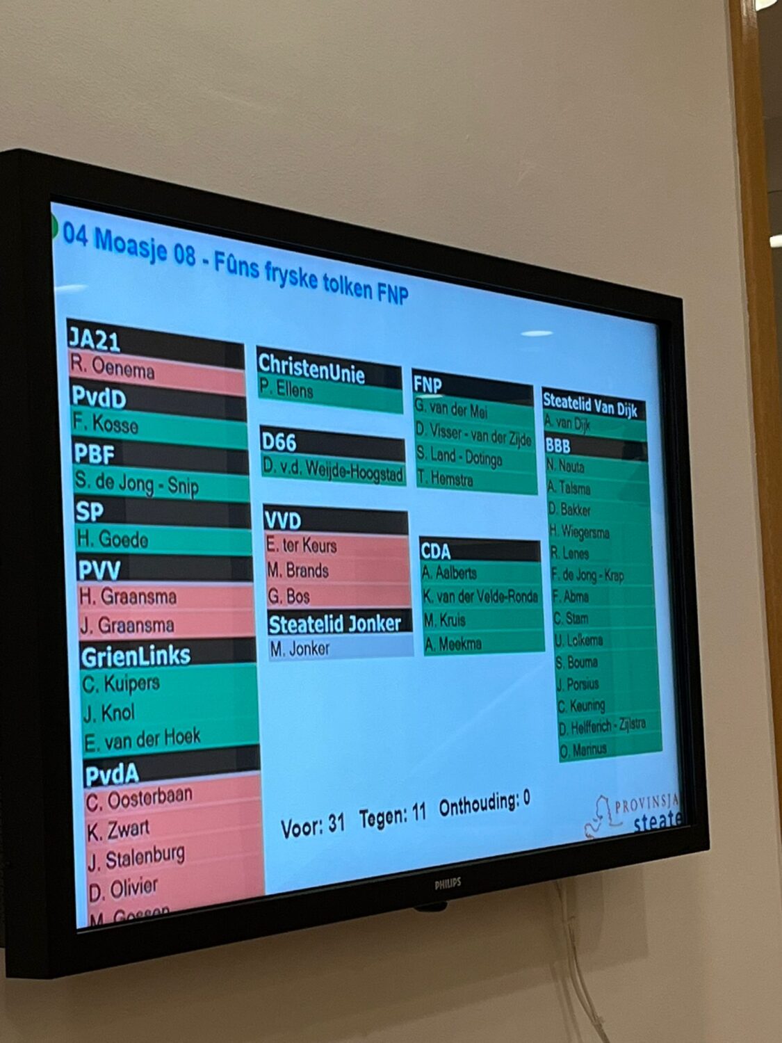 De motie, ingediend door Sita Land-Dotinga van de Fryske Nasjonale Partij (FNP), kon op een ruime meerderheid rekenen. De regeling gaat in per 1 januari 2026.